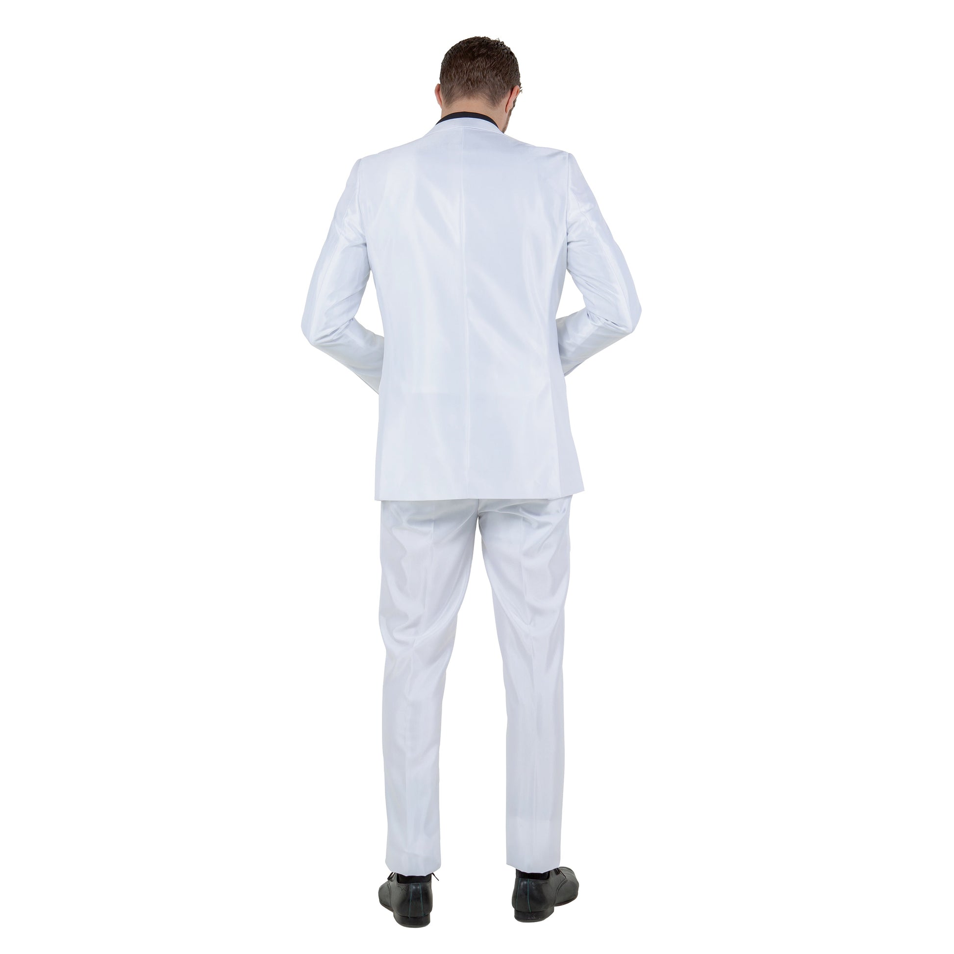 Elevate your formal attire with the Men's Tazio Slim-Fit 3pc Suit in White. Crafted with precision by Tazio, this ensemble exudes sophistication and style. The Solid Sharkskin jacket features a Slim Fit, Two Button Front Closure, Notch Lapel, and convenient Side Vents, while the vest adds a polished touch with its Five Button closure and V Neck design. Completing the look, the coordinating Solid Sharkskin pants offer a sleek Flat Front design, 37 Inch Inseam, and practical features like back besom pockets with button closure and front angled slip pockets. Perfect for weddings, galas, or formal business events, this suit guarantees a timeless and elegant appearance with every wear.