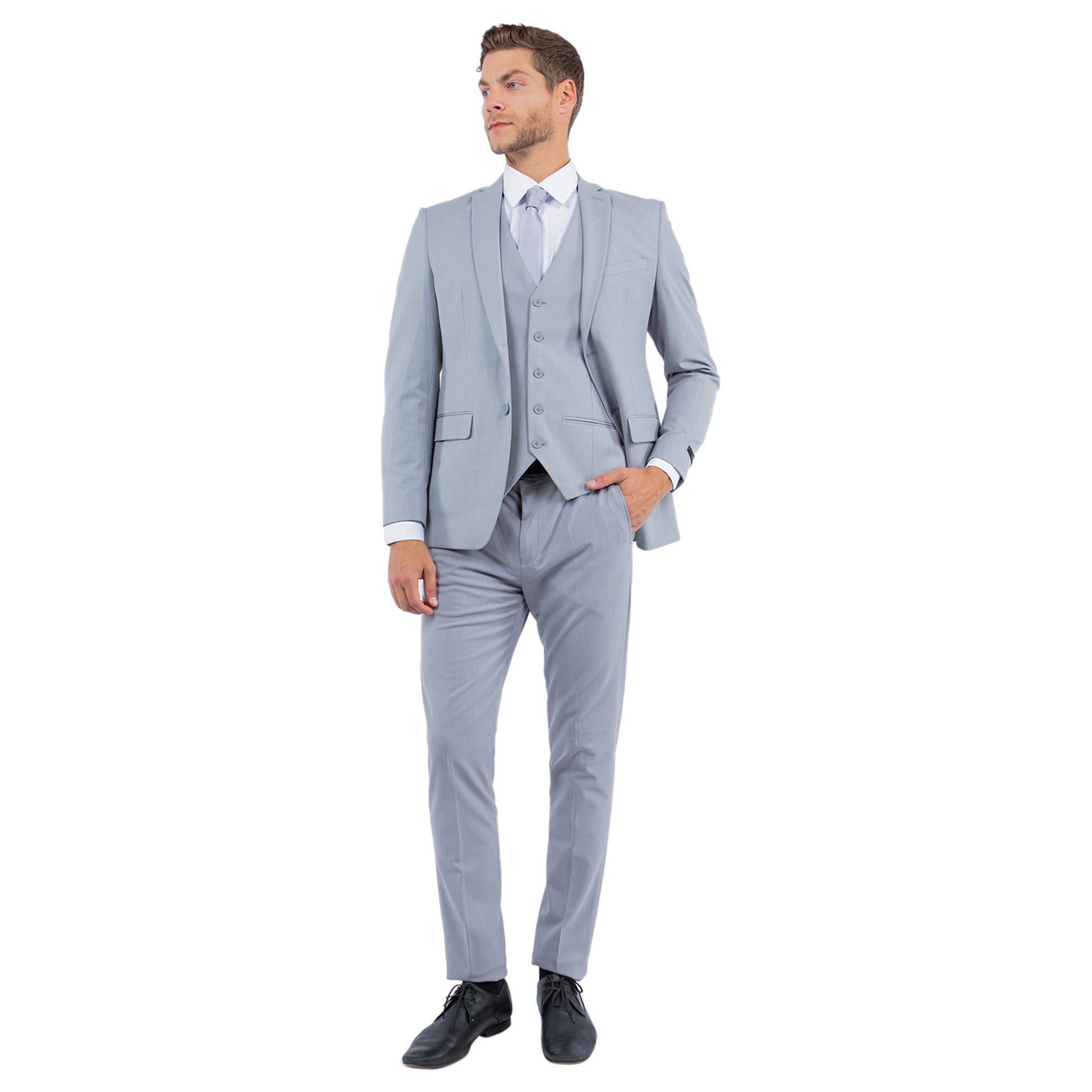 Upgrade your wardrobe with the Zegarie 4-Way Stretch Men's 3pc Suit Set. This sleek, slim-fit suit features a one-button jacket, classic V-neck vest, and flat-front pants with practical pockets. Made from flexible 4-way stretch fabric, it offers unmatched comfort and style for any occasion. Elevate your look with Zegarie���s perfect blend of sophistication and ease.