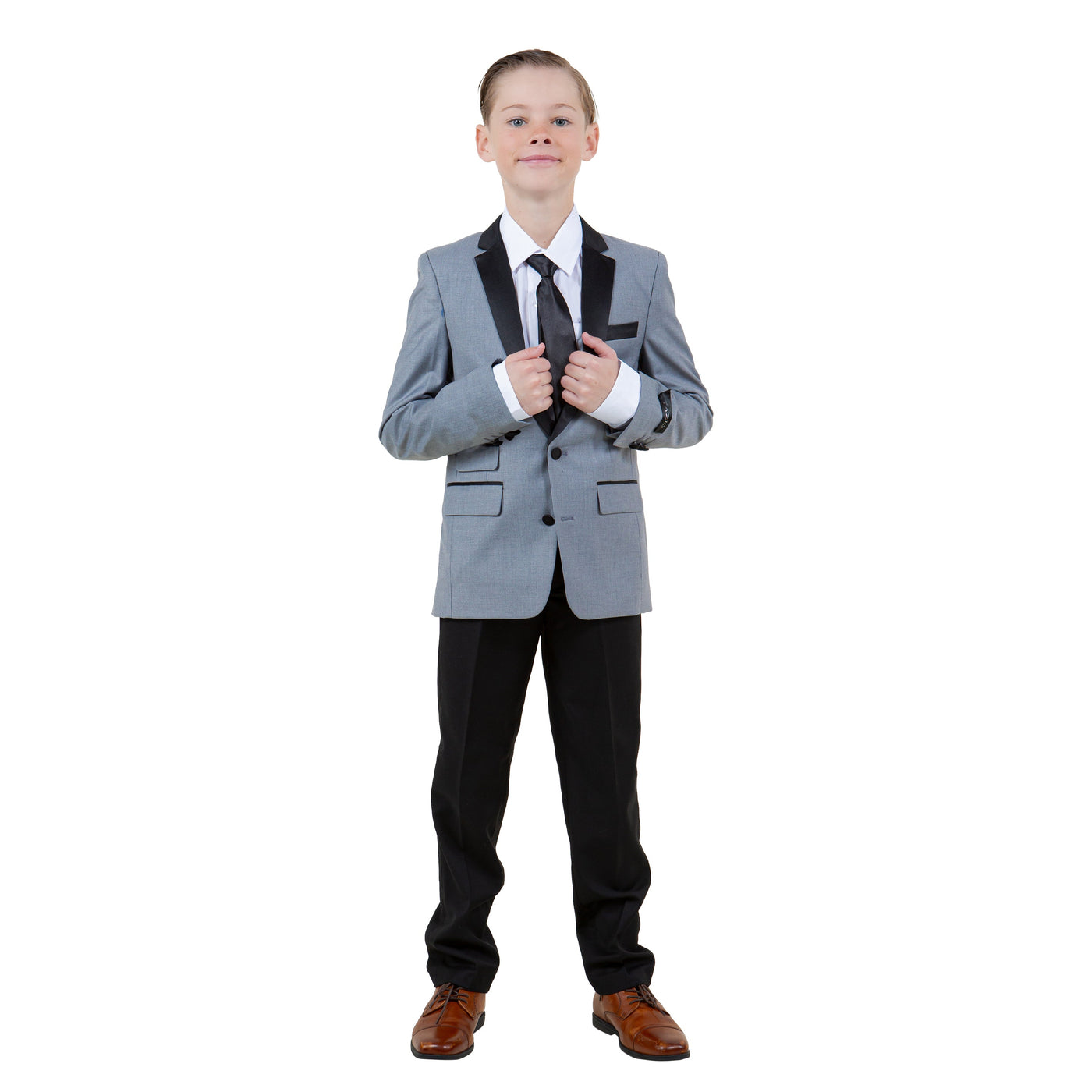 Tazzio Boy's 5pc Solid Suit - Light Grey/Black / 2 / B369S-03