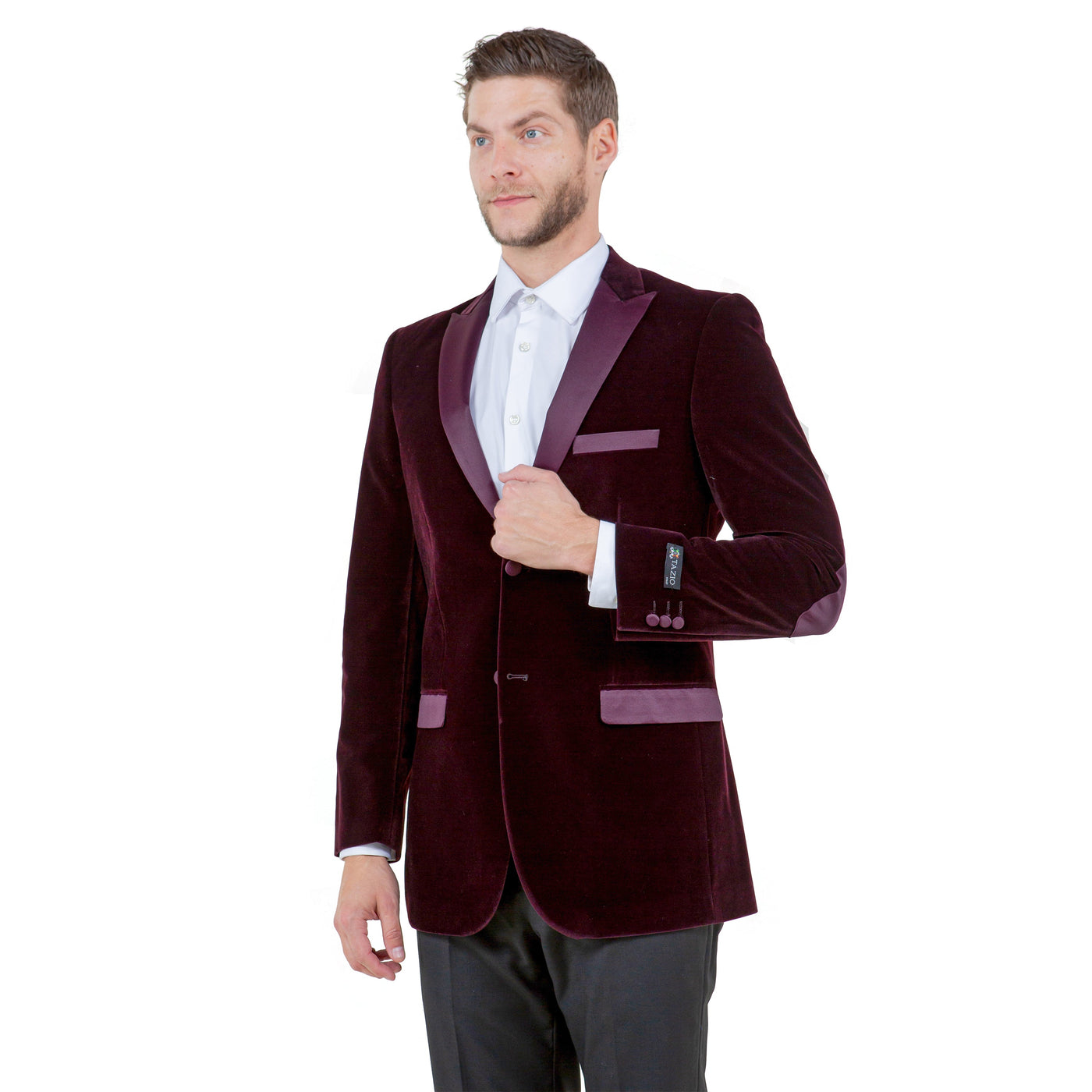Men's Modern Fit Velvet Blazer w/ Elbow Patch - Wine / 38R / MJ114S-03
