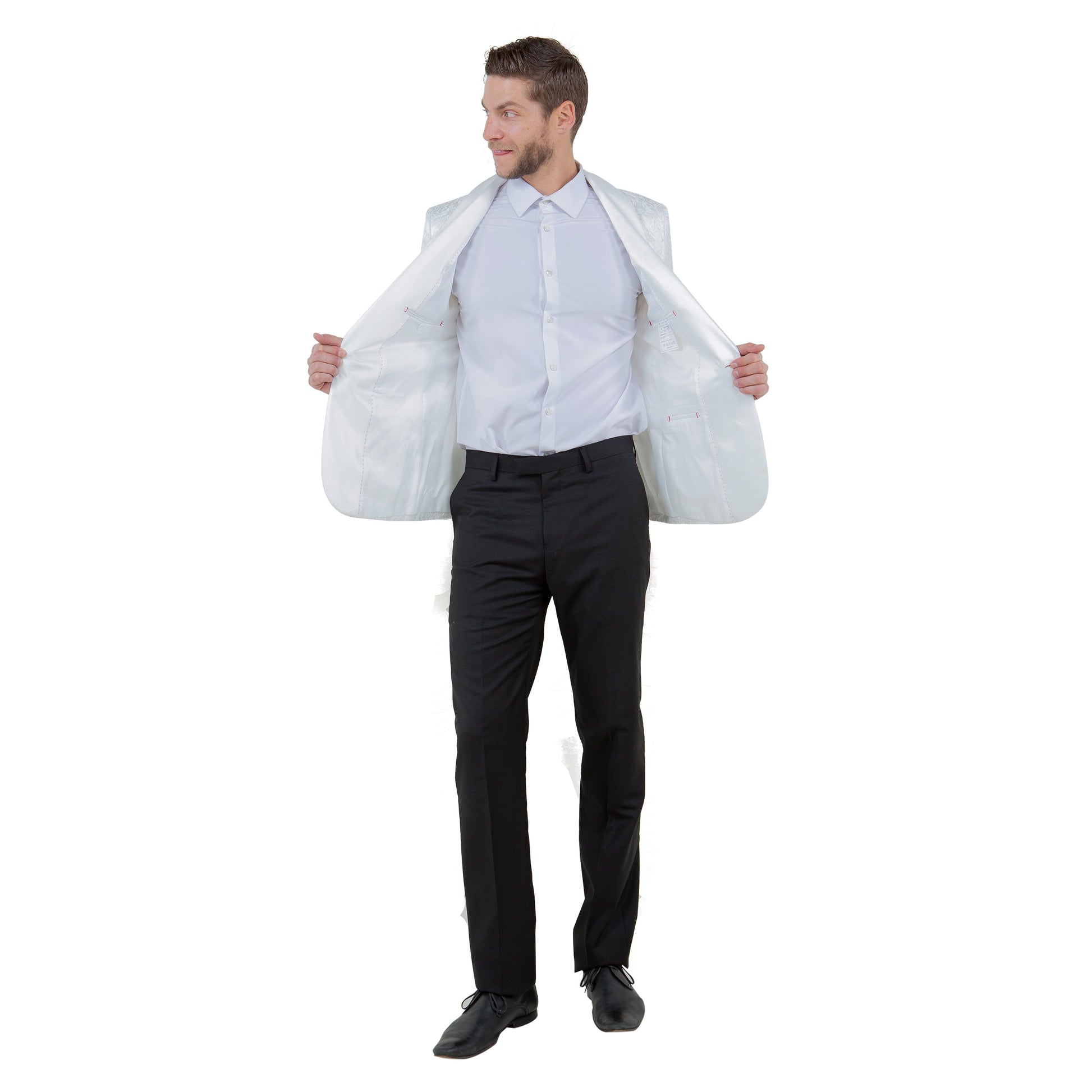The Tazzio Men's Slim-Fit Solid Paisley Blazer is a perfect addition to your wardrobe. Featuring a textured paisley pattern, satin shawl collar, and one-button front closure, this slim-fit blazer offers a modern and stylish look. Practical details include two besom front pockets, three interior pockets, interior French facing, and underarm sweat guards for comfort and functionality. Ideal for formal occasions, this jacket-only piece is perfect for mixing and matching with your favorite pants.