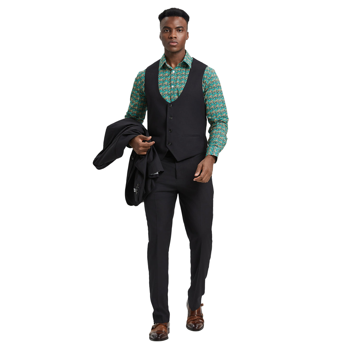 Men's Hybrid-Fit 3pc Suit Set, Jacket Vest and Pants - Black / 44R / SM255H1-01