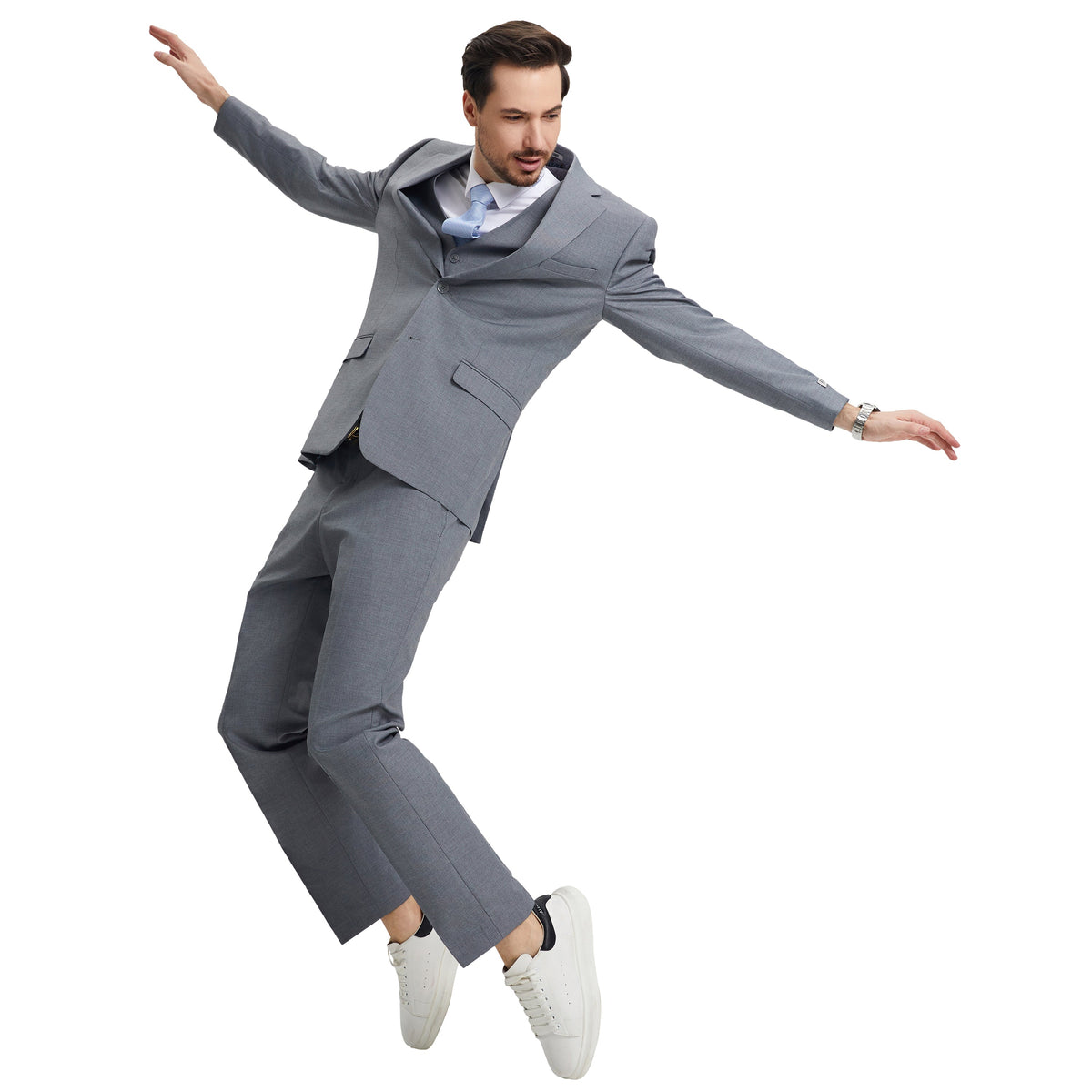 Introducing the Men's Barry's Menswear Hybrid-Fit 3pc Notch Lapel Suit Set in a refined Mid Grey hue���a timeless embodiment of classic style and modern sophistication. Crafted by the esteemed Barry's Menswear brand, this ensemble seamlessly blends tailored precision with the comfort of a modern silhouette. The jacket features a classic Notch Lapel and a Hybrid Fit, boasting functional elements like a two-button front closure, French facing, and underarm sweat guards. Complementing the jacket, the vest showcases a V-shaped design, four-button closure, and two convenient pockets, while the pants offer both comfort and style with an expandable waistband and ample storage. With its innovative Hybrid-Fit catering to slim and modern preferences, this suit ensures the ideal fit for every discerning gentleman. Experience unparalleled elegance and versatility, exclusively from Barry's Menswear.