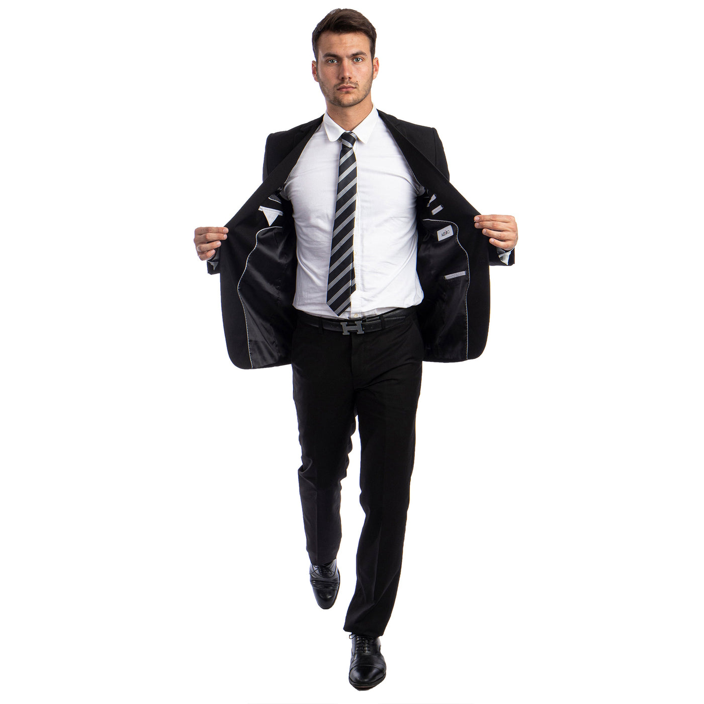 Black Men's Hybrid-Fit 3pc Paisley Suit w/ Wide Black Shawl Collar - Black / 36R / M276S-01