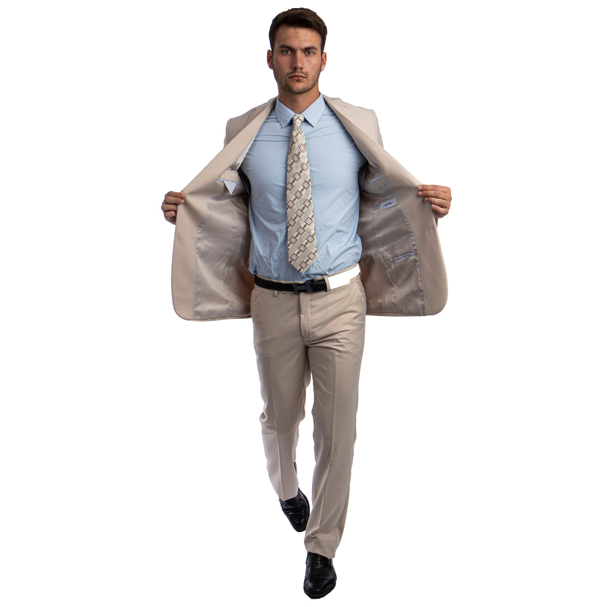 Tan Men's Hybrid-Fit 3pc Paisley Suit w/ Wide Black Shawl Collar - Tan / 38L / M276S-06