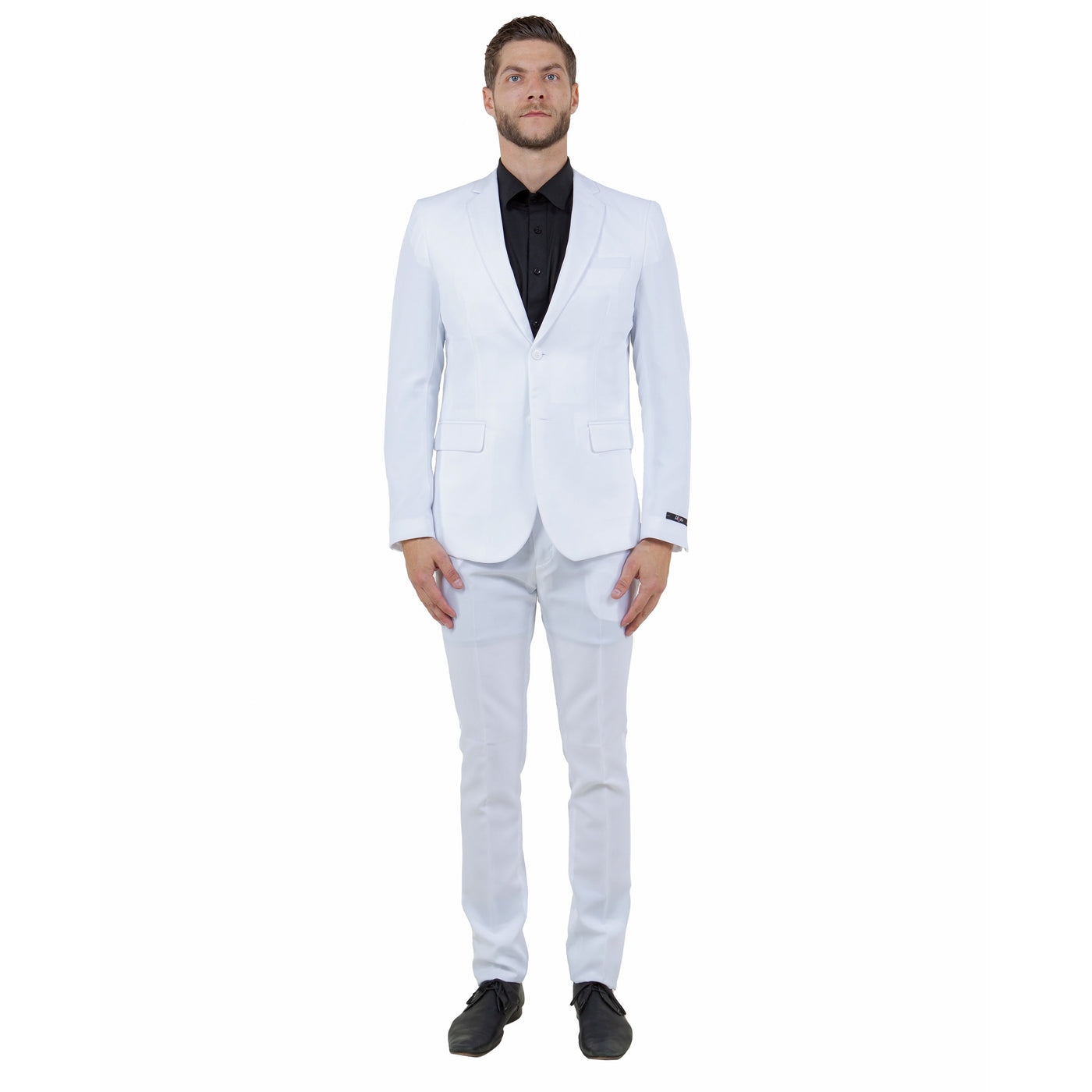 Indulge in the refined elegance of the Vitto Men's Polyester Suit Hybrid-Fit 2-Piece in timeless white. Crafted with meticulous attention to detail, this suit effortlessly blends sophistication with versatility. The single-breasted jacket showcases a two-button closure, notch lapel, and underarm sweat guards, ensuring comfort throughout the day. Meanwhile, the hybrid-fit pants feature a flat front, expandable waistband, and generous storage pockets for practicality. Constructed from premium 100% polyester, this suit guarantees durability, wrinkle-resistance, and easy upkeep. Whether it's a formal event, business engagement, or special occasion, the Vitto Men's Polyester Suit exudes understated elegance and enduring style.