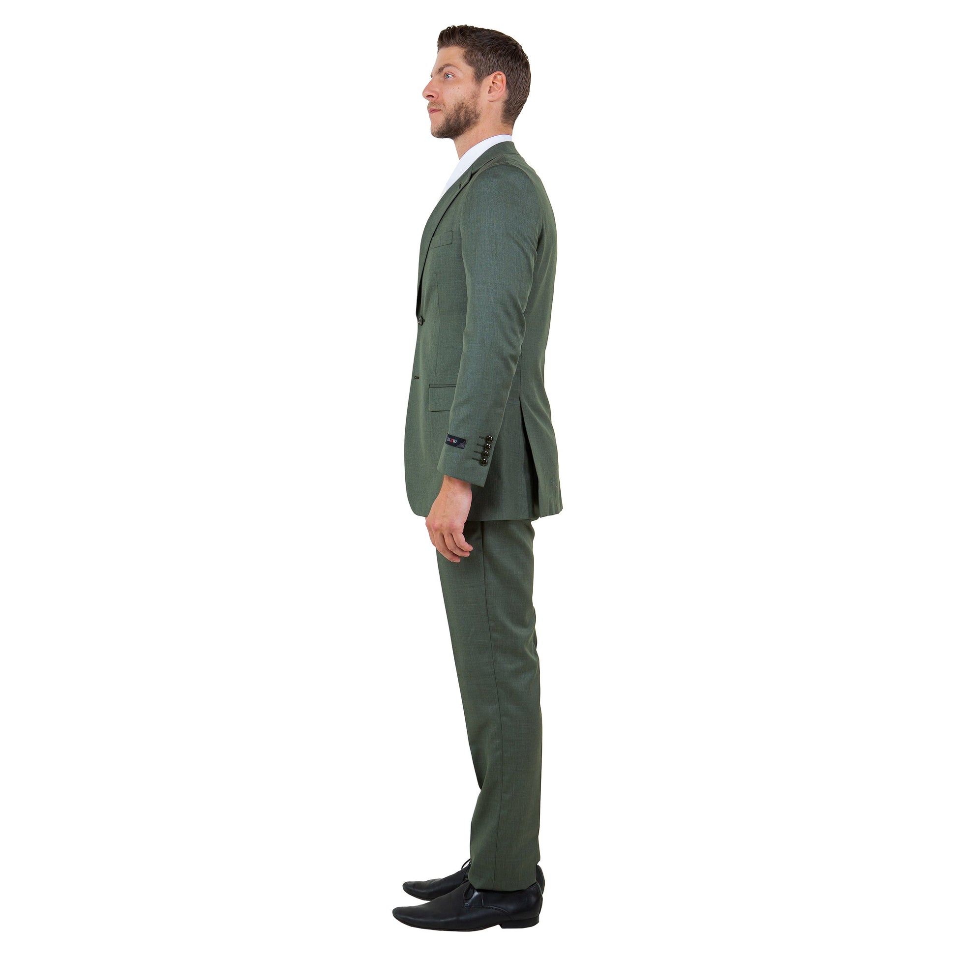 Step into refined sophistication with the Tazzio Men's Hybrid-Fit 3pc Sharkskin Suit in Olive. Meticulously crafted, this ensemble seamlessly blends timeless elegance with modern functionality. The single-breasted jacket boasts a two-button closure and notch lapel, while the vest adds depth with its V-neckline and five-button front. The hybrid-fit pants ensure both comfort and style with an expandable waistband, flat-front design, and practical pockets. Ideal for formal occasions or the professional arena, this suit exudes confidence and refinement, leaving a lasting impression wherever you go.