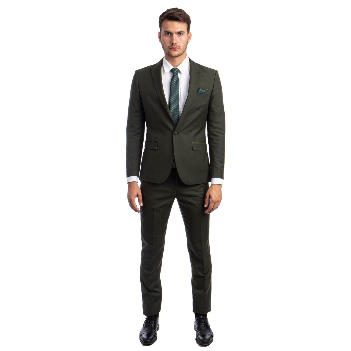Men's Skinny-Fit 2pc Suit w/ Peak Lapel - Green / 34S / M284SK-03