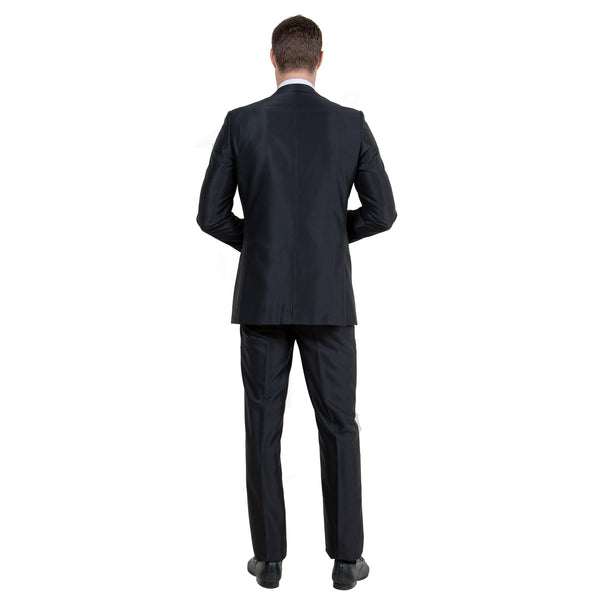 Black / Black Solid Tone on Tone Satin 2-PC Slim Fit Stretch SuitsMens Formal Suit 2-PC 2-Btn Slim Fit Suit for Men$134.99