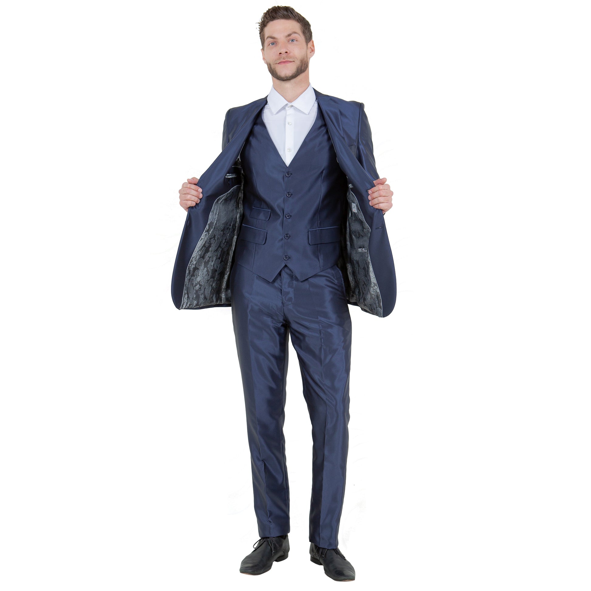 Elevate your formal attire with the Men's Tazio Slim-Fit 3pc Suit in Navy. Crafted with precision by Tazio, this ensemble exudes sophistication and style. The Solid Sharkskin jacket features a Slim Fit, Two Button Front Closure, Notch Lapel, and convenient Side Vents, while the vest adds a polished touch with its Five Button closure and V Neck design. Completing the look, the coordinating Solid Sharkskin pants offer a sleek Flat Front design, 37 Inch Inseam, and practical features like back besom pockets with button closure and front angled slip pockets. Perfect for weddings, galas, or formal business events, this suit guarantees a timeless and elegant appearance with every wear.