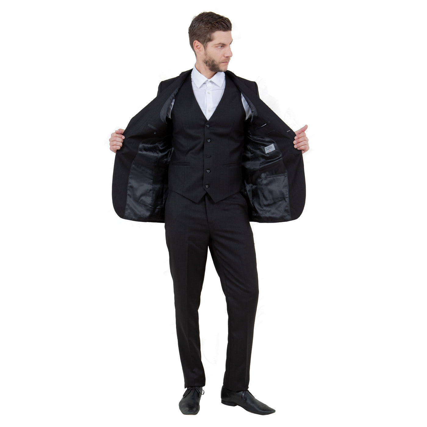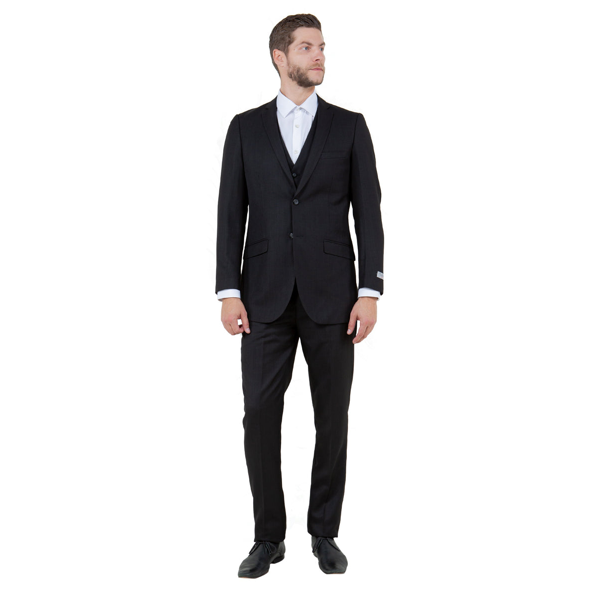 Black Men's Slim-Fit 3-Piece Sharkskin Suit - Black / 34S / M250S-06