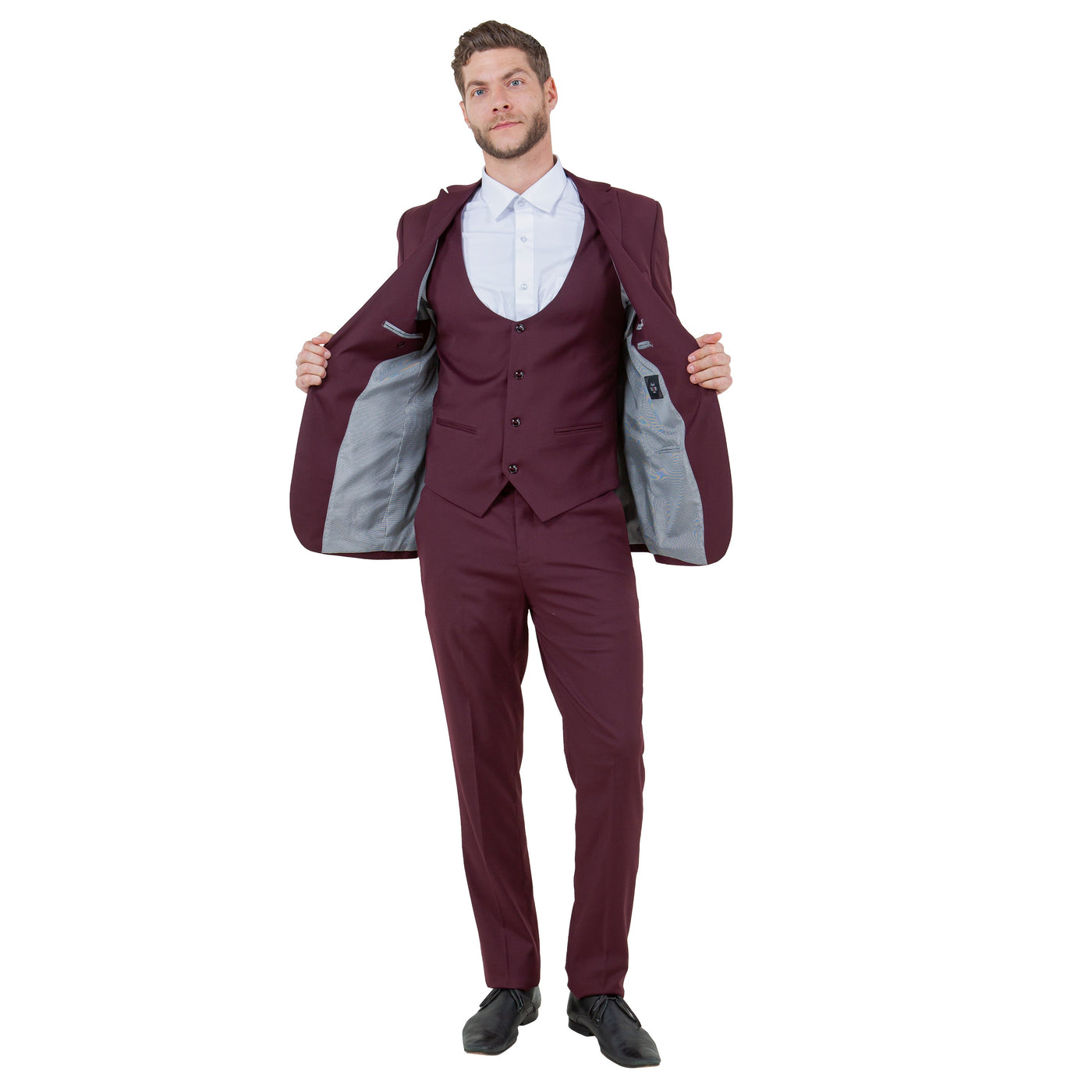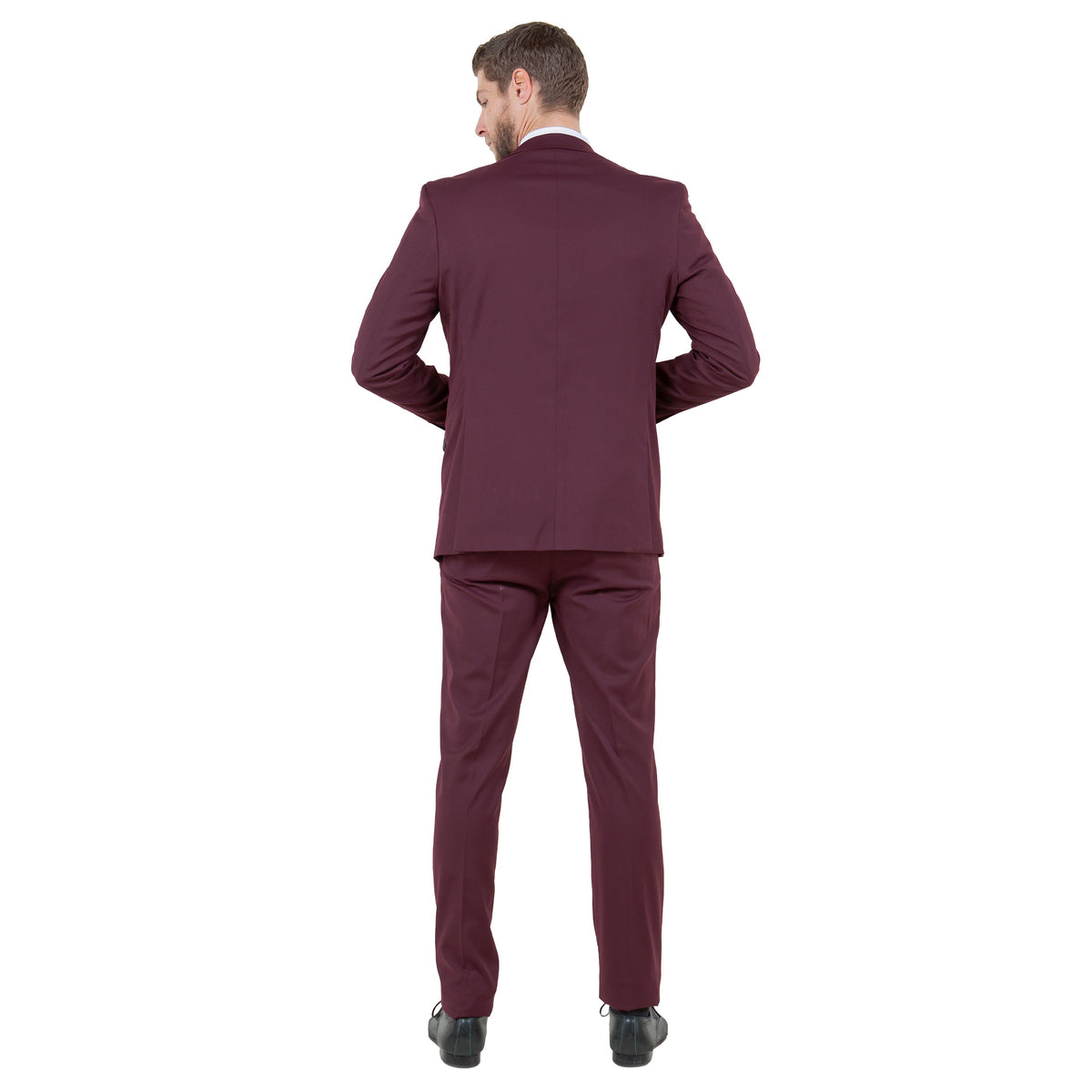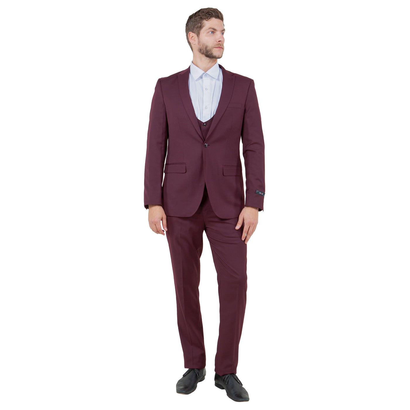 Burgundy Men's Ultra Slim-Fit 3pc Suit w/ Expandable Waistband