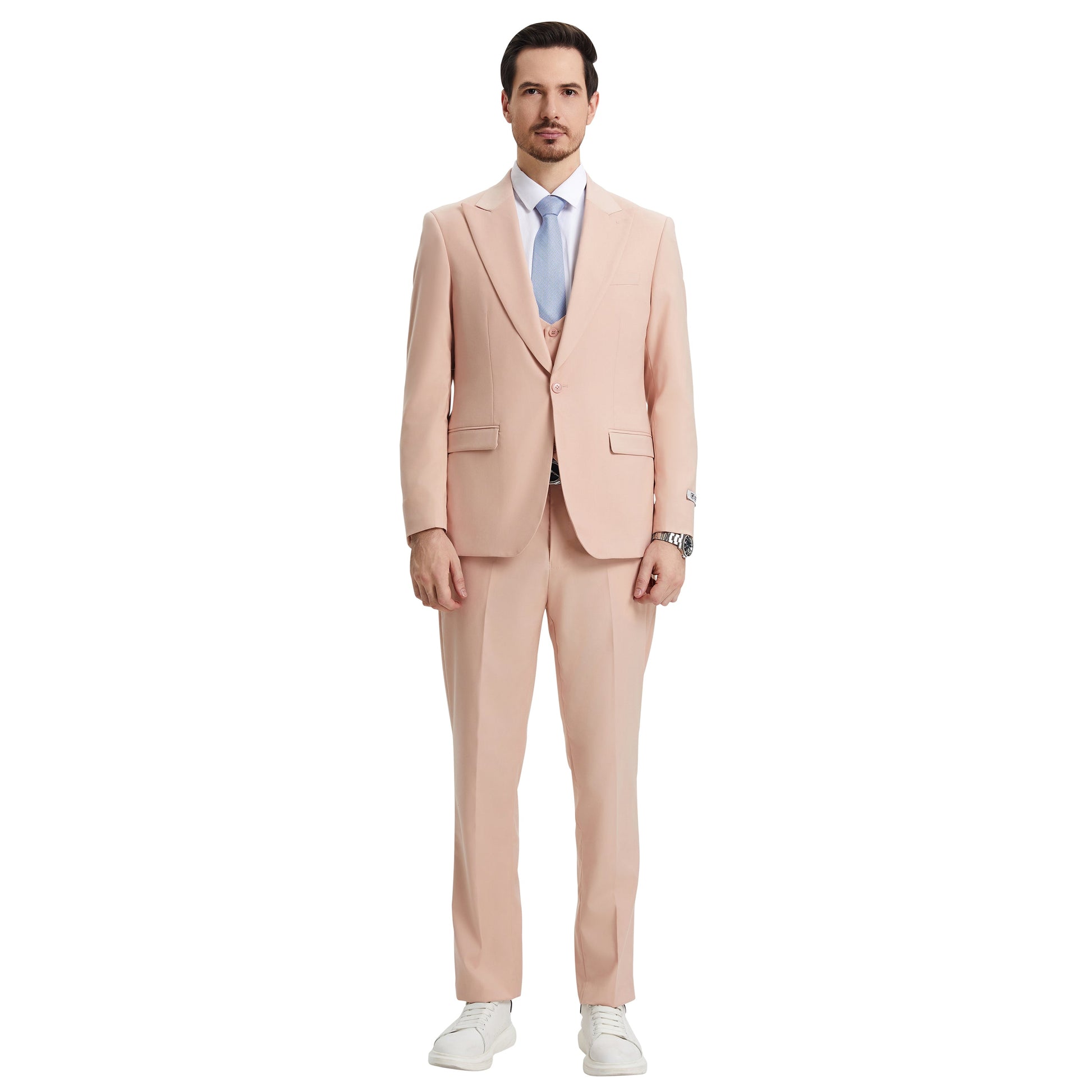 Experience timeless sophistication with the Stacy Adams Hybrid-Fit 3pc Suit Set in delicate blush, meticulously crafted for the modern gentleman. The solid blush jacket boasts a two-button front closure, peak lapel, and underarm sweat guards, ensuring both style and comfort. Complementing the ensemble, the blush U-shaped vest features a four-button closure for added refinement. The flat-front blush pants, complete with an expandable waistband and functional pockets, offer unparalleled versatility. Available in slim-fit sizes 36-44 and modern-fit sizes 46-62, this blush suit set caters to diverse preferences, promising a tailored look for every occasion. Unleash your confidence and sophistication with the Stacy Adams Hybrid-Fit 3pc Suit Set in blush.