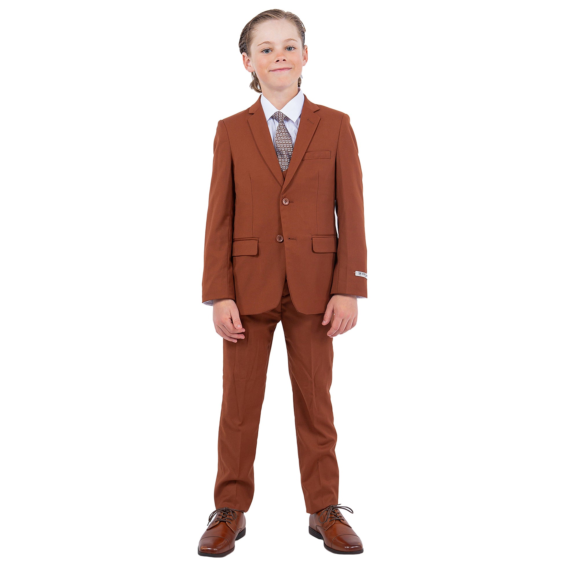 The Stacy Adams Boy's 5pc Solid Suit offers timeless elegance for young gentlemen, including a jacket, vest, pants, tie, and dress shirt. The single-breasted jacket features flap side pockets, a two-button front closure, a notch lapel, and a traditional length. The matching vest has a U-neck, four-button front, and slit-pockets. The solid, single-pleat pants complete the cohesive, sophisticated look. Perfect for any formal occasion, this suit ensures your young man looks sharp and stylish.