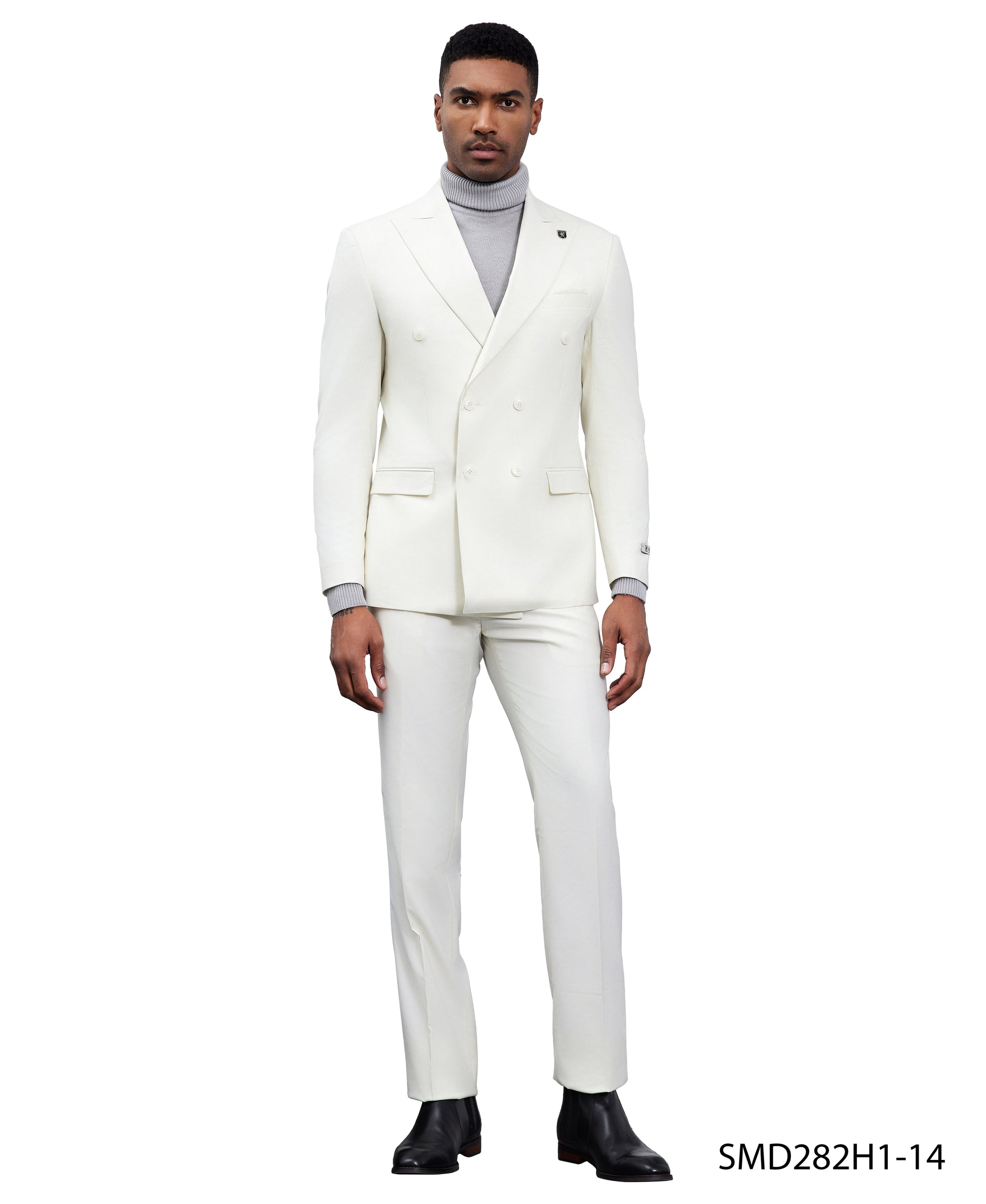 Experience sophistication and style with this Mens-suit in Ivory by Stacy Adams. Featuring a sleek Double Breasted design, it combines comfort and elegance, making it the perfect choice for any occasion.